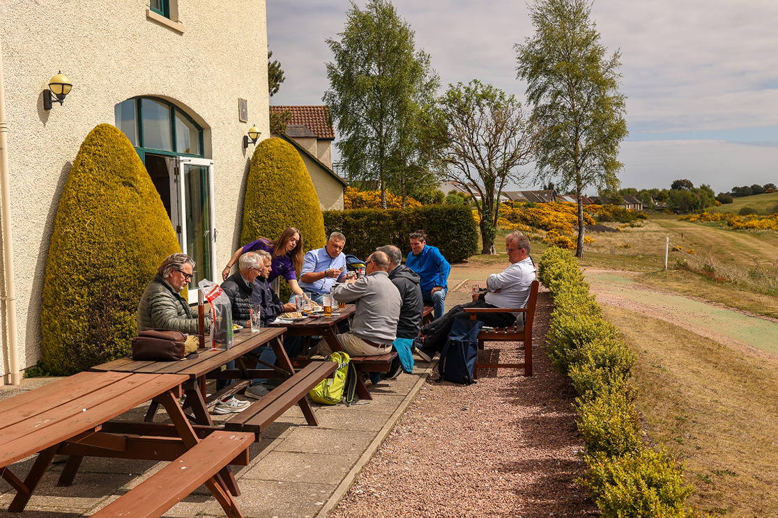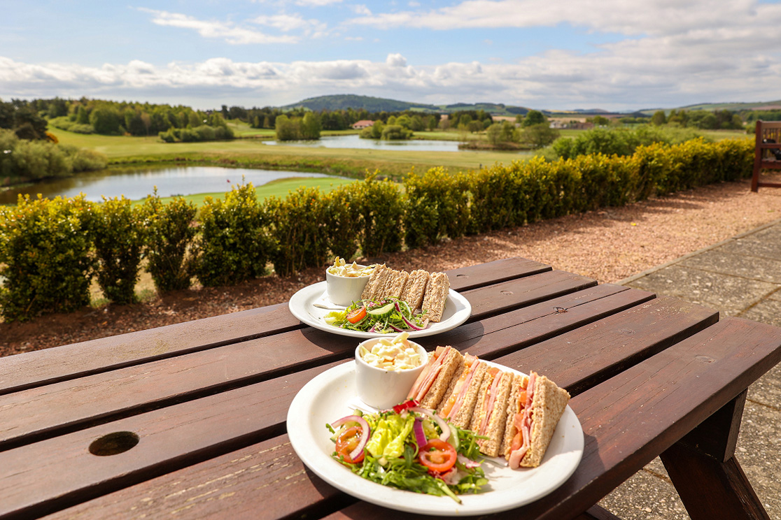 Enjoy the outstanding views of the course and beyond with a drink or meal